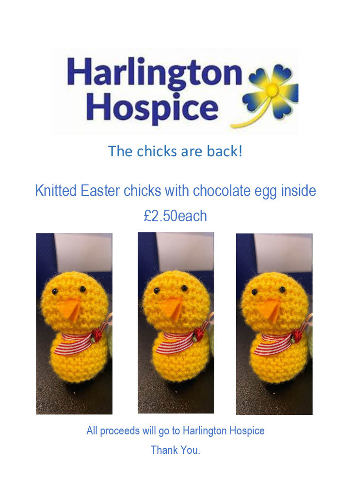 March 24th, 2026 Knitted Easter Chicks available to buy today and tomorrow after school this week.